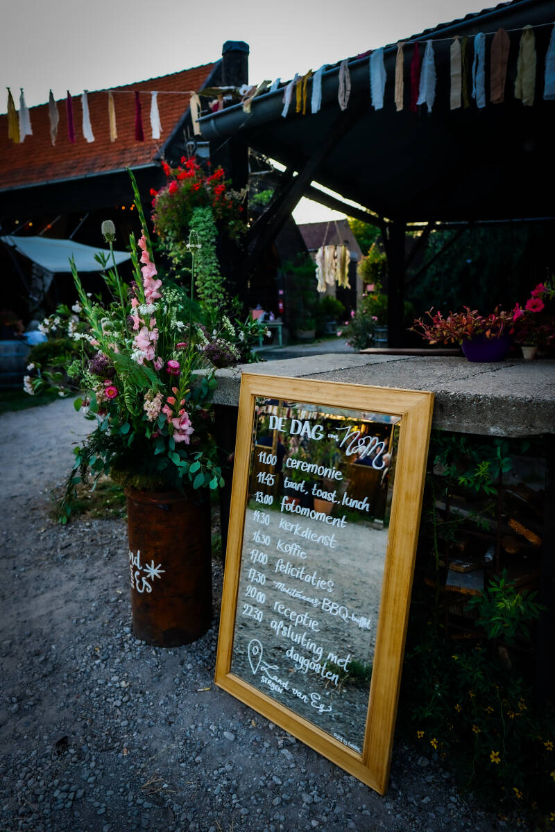 Styling (vlaggen, spiegelborden) door mij, samen met de bruid!